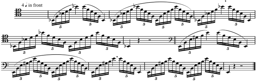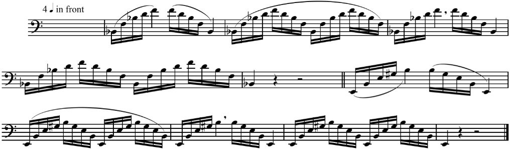 Reduce mouthpiece movement to a necessary minimum. Like the previous exercise, maintain relaxation through the whole exercise, especially when reaching the higher register.