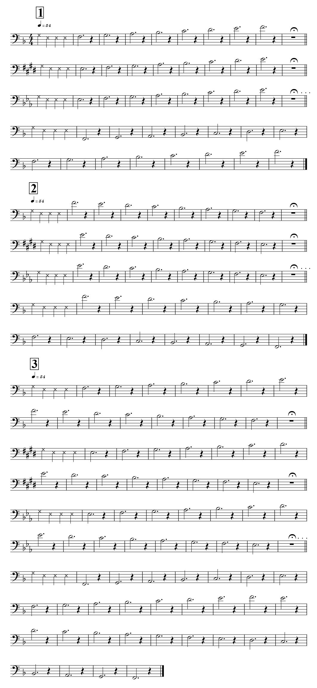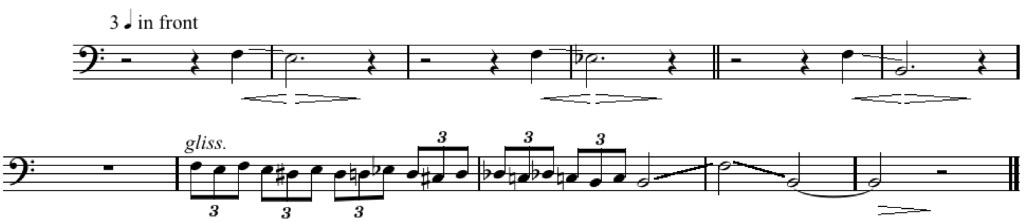 Like the buzzing exercise, connect all notes through an even, slow glissando. Keep a relaxed approach to the exercise. Thanks to Ben van Dijk for granting me permission to reproduce this exercise from his book Ben’s Basics.